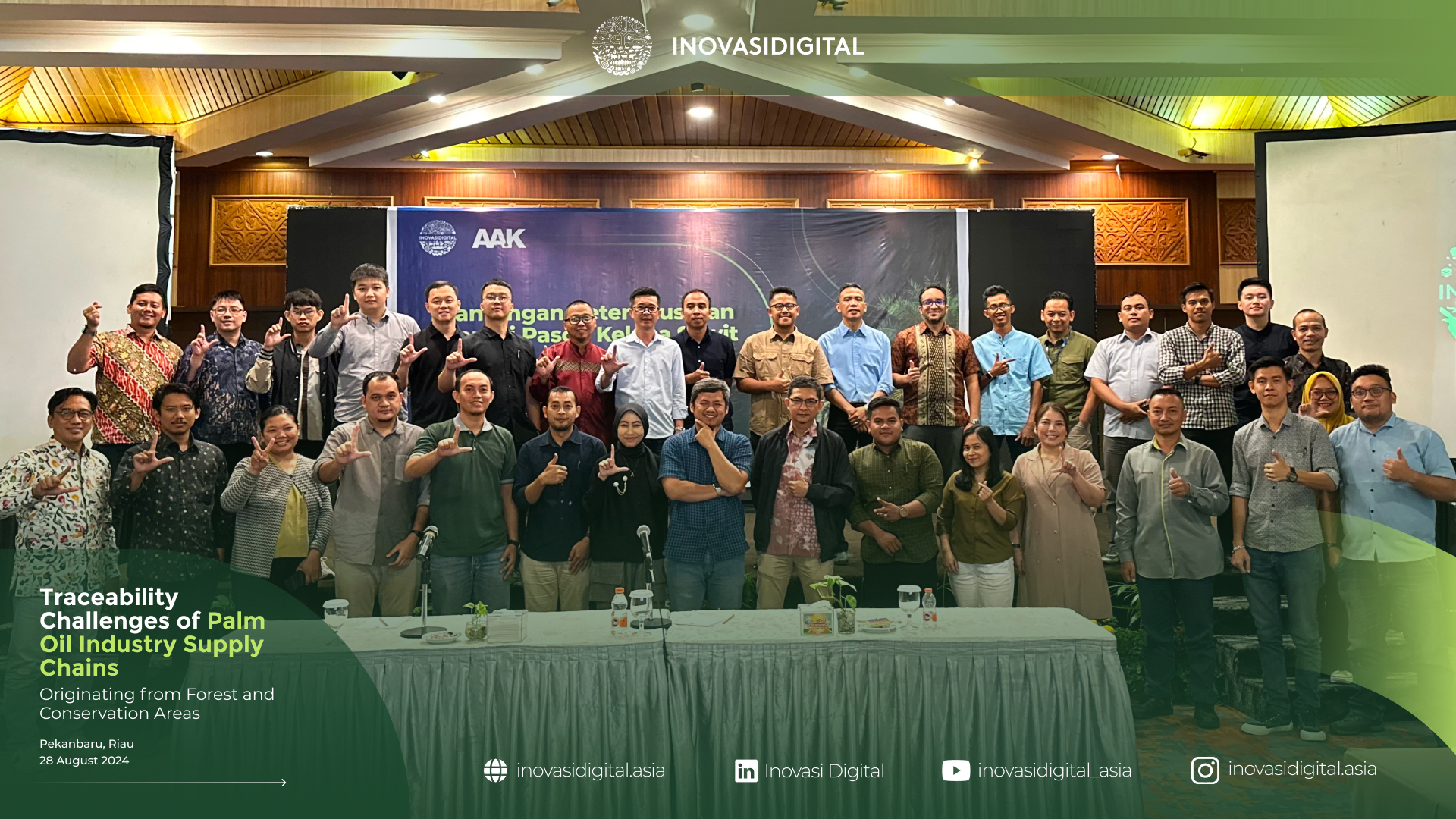In 27-28 August 2024, in Pekanbaru, Riau, Inovasi Digital, in partnership with AAK, hosted a series of workshops titled “Traceability Challenges of Palm Oil Industry Supply Chains Originating from Forest and Conservation Areas.” The workshops brought together key stakeholders involved with Tesso Nilo National Park, including government officials and representatives from the private sector, such as AAK’s palm oil mill partners and other palm oil industry buyers.