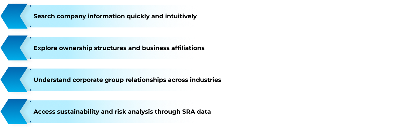 In essence, Corporate Profile serves as an information map that connects corporate data with sustainability insights, enabling users to identify ownership networks, business linkages, and potential risk exposures in a single view.