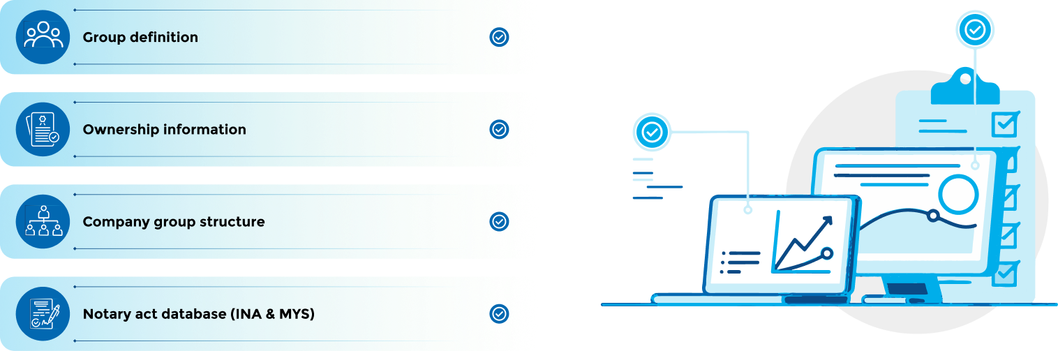 We categorize all business entities into company groups approach with our methodology. More than 1.845 group companies and 10.200 subsidiaries verified by Inovasi Digital.